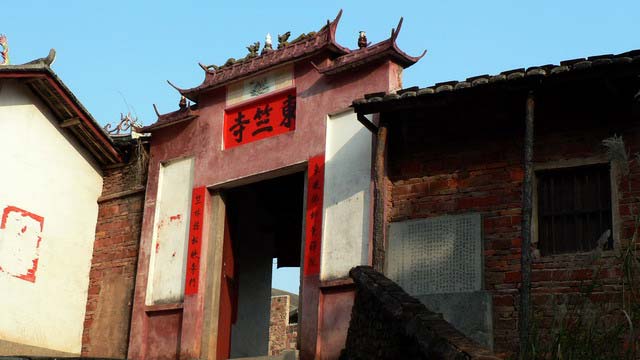 东竺寺 原称“东塔院”。位于上杭县原县治钟寮场,宋熙宁年间始建。乾道三年(1167年),随县治迁移今县城东大街,后毁。淳祐十一年(1251年)重建,更名“东竺寺”,后屡建屡毁。明成化二年(1466年),在原址再建,为砖木结构,殿内圆形藻井,绘画雕花;中为佛殿,左右为禅房,佛殿后属法堂、僧舍、石栏山门。清咸丰十年(1860年),在西畔增建书舍10余间为“东竺别业”。民国期间曾设登俊小学。1982年,殿堂拆建为临江镇办公楼,仅存部分法堂和僧舍。