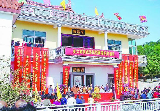 普陀庵位于湄洲湾北岸山亭乡东仙村的普陀山上,处于著名的旅游景点紫霄洞的东北侧,这里风景优美,空气清新,依山傍海,绿树成荫,怪石林立,历来为高僧的清修之地。庵前有一棵老态龙钟的百余龄槐树,庵右下方有一石洞。洞口可容两人进出,洞高不到一米,洞内暗淡无光,欠身持烛进内勉强可行到10多米深处,其洞多蝙蝠粪便。民间相传,明代有百姓100多人避倭难于洞中,一只家犬不知好歹,在洞口狂吠。倭寇闻声赶来,进到洞中,只见一团漆黑,也不敢贸然深入,便把洞内咽喉之处堵死,避难群众全被闷死。这场浩劫,使这个原本可以直通海底的洞穴再也无人敢于深入探个究竟了。普陀庵后有一块几十平方米的“观海石”。置身其间,眺望海天,直教人心胸博大,思接千载。