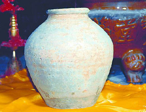 但是,历史不会让人们永远遗憾。后来,当地群众、信徒、爱国华侨陆续捐款重建这座名寺,至今已在旧基上重建五座庙宇。更令人振奋的是,其间一位女信徒在旧基上挖出一个陶罐(如图),初看并不起眼,可在古文物专家眼里却是难得宝贝。此次又经市文物专家考鉴,认定是唐朝初期生产的陶罐,当地群众无不惊讶,都称是佛祖有灵。