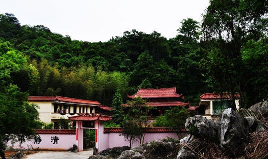 明台寺采用中轴对称的宫殿式建筑,宏伟壮丽,庄严肃穆,寺内外古木扶疏,名花溢彩。游客在出玉华洞后必经此寺。寺中住有僧人,香火旺盛,是当今朝圣的景点。每年农历的二月十九(观音诞辰)、六月十九(观音成道)、九月十九(观音涅磐)这里都举行盛大佛会。徐霞客游玉华洞时曾在此庵食宿,并在《玉华洞游记》中记载:“山半有明台庵,洞后门所经,余时未饭,复出道左登岭,石磴萦松,透石三里,青芙蓉顿开庵中,饭于庵仍下至洞前门……,下浴庵中,宿焉。”