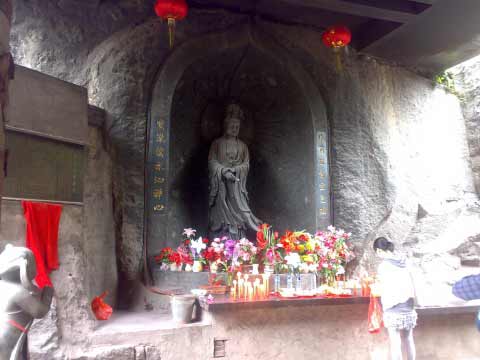 莲山寺殿宇佛像造型完美、美轮美奂,体现出佛像应有的圆满和智慧。寺内的石雕滴水观音像,更是堪称一绝。该像是因地制宜,就地取材,利用现成花岗石,天然泉水雕刻而成,工艺精湛,立体感强,采用唐代的观音造像法,灵巧自然,像一尊活灵活观的菩萨下凡于此,游客见了无不叫绝,可谓“片石孤云空色相,宝瓶滴水沁禅心”。