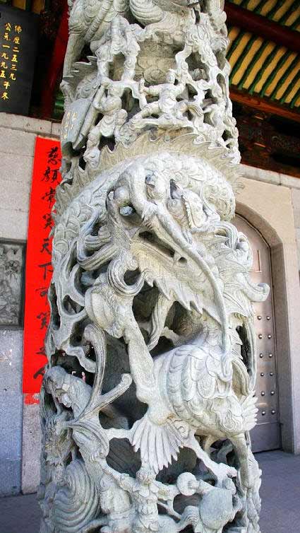 莲山寺建筑充分体现出闽西古建筑的风格。就拿大悲阁来说,其采用的是八卦造型,由十六根石柱组成。其中外围八根石柱的雕刻内容,展示了闽西各地的风土人情,如新罗区的九龙柱、永定的土楼、长汀的母亲河、上杭的船灯、连城的海上走古事、武平的碧水公园等,惟妙惟肖,栩栩如生。