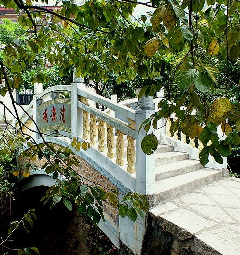 信步于花枝烂漫的山道上,品读雕刻在山崖石壁上的佛理词句,听着那仿佛通达云霄的徐徐梵音,望着云雾中圣洁端庄的观音神像,心灵忽然间被洗涤得清透而飘渺。