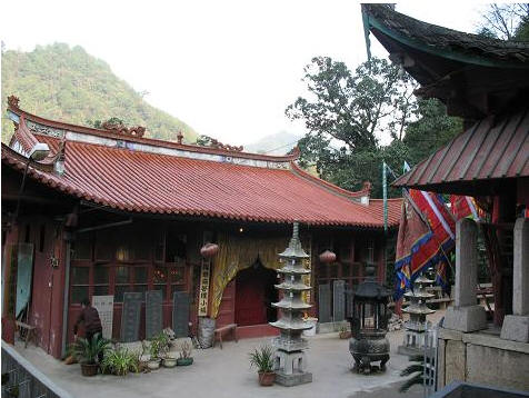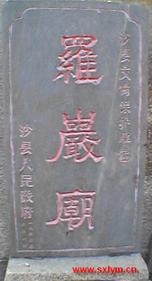 穿过凉亭百米,只见一座悬于悬崖峭壁之上,石墙呈倒刺鱼鳞状,饱经沧桑的庙宇,这便是道家修行之地——罗岩庙。罗岩庙,始建年代无史可稽,据现存庙内的一口古钟的铸文落款时间为宋嘉定六年,由此可见罗岩庙已经有至少一千两百多年的历史了。主殿座南朝北,三开间,进深六米余,单檐歇山顶抬架式木结构,小巧玲珑,其屋顶为斗拱木镂塔形花格,异常精致,出自清代工匠之手。跨过主殿前的古道,就是前殿。前殿昔为凌空架起的二层木建筑,单檐歇山顶,每层面积约80平方米,因年久失修早已破烂不堪,目前已拆除并采用钢筋混凝土框架,从崖底直升古道路面,高约30多米。主殿的左侧是观音殿,约20平方米,悬山木结构。与观音殿相邻的是二层木楼房,上为客房,下为斋堂,可供30多人食宿。厨房内施工的土垒炉灶,据说该灶源于太保爷神火,因此再湿的柴块进了炉膛也能烧出熊熊大火,所以人们也一直舍不得拆去,沿用至今。