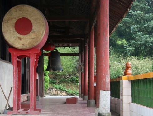 坐落在漳平和平镇下墘石鼓山村国公岐山下。山崖中有一个如鼓石,相传一仙人骑牛经过国公岐时,此鼓石发出震响,故取名“石鼓迎仙”。山隔顶石壁上留有据说是仙人足模和牛脚印迹。历来被列为菁城八景之一。该殿兴建于明代,清顺治十二年(1655年)和同治二年(1863年)经过两次重修。殿中供奉“黄公祖师”与“张公法主”像。