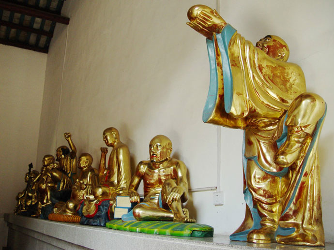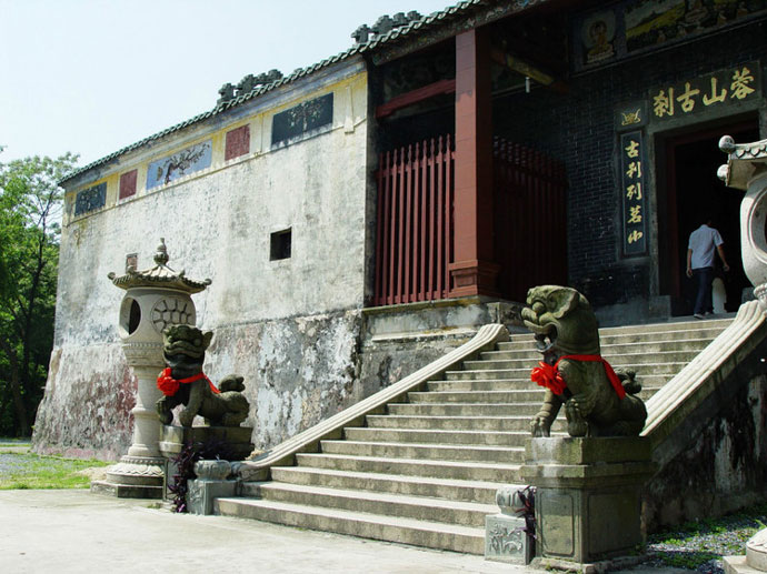 蓉山古刹,位于韶关市区河西约2.5公里处的芙蓉山上。芙蓉山在汉代已很著名,相传当时有个叫康容的道士在此砌灶炼丹,故后世有“蓉山丹灶”之名,为曲江二十四景之一,后人在康容炼丹处建庵,上书“芙蓉古刹”。蓉山古刹在芙蓉山山腰近顶峰处,始建年代以及历代修缮情况无法考证。但据地方志记载,蓉山古刹在明代崇祯年间曾毁于兵火,后由明僧募修。另外,据现存《重修芙蓉山真武帝殿记》石碑记载,以及壁画上的落款,可知蓉山古刹在康熙三十四年,光绪七年都曾有修缮。但至近代由于长期失修,几近碳圯。1985年,市政府拨款按原貌重新修复了蓉山古刹。修复后蓉山古刹占地面积1200多平方米,建筑面积800平方米,分前殿、正殿、后殿、左右厢房共8间。古刹内外的壁画也大都按原来的痕迹画出。壁画内容大都是有关修身炼丹之事,亦有其它花草山水画。