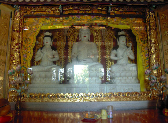 金光寺座落在中国菜脯之乡——饶平高堂镇的大岭山上,原是一座荒废多年的古寺,经吴楚君师父发愿重修,十方善信捐资兴建,终于成为一座雄伟庄严的名寺。汽车沿国道324线至汕汾路段的高堂大道驶去,约几里路之遥向左转入金光寺寺道,再沿着陡峭曲折的“之”字形公路爬上郁郁葱葱的大岭山,气势轩昂的金光寺就矗立在山腰上。金光寺的寺容寺貌雄伟壮观,整个布局虽然保持中国寺院的规模,但与一般寺院不同的是其中部分殿堂供奉泰佛,最为壮观的是千手观音立佛。千手观音高3.8米,重 6800斤,造型典雅,金碧辉煌,这尊弥足珍贵的大佛是该寺住持吴楚君师父千里迢迢从泰国请来的。