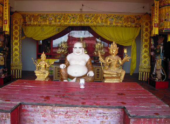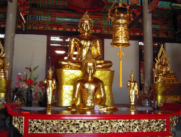 1995年7月,这尊特制的大金佛从泰国装箱上船启运,远涉重洋,千里迢迢来到饶平金光寺,受到十方善信的顶膜礼拜,附近学校师生翩翩起舞,夹道欢迎。与此同时,余颂猜先生又把另一尊释加牟尼泰国大金佛赠送给金光寺,“中泰合璧,好事成双”遂传为佳话。余先生偕泰国高僧和原庆堂惠娟姑娘带领泰国众多善信前来金光寺举办泰佛开光典礼的喜讯轰动四面八方,金光寺成为中泰宗教交流的桥梁,名声广为流传,香火十分鼎盛。