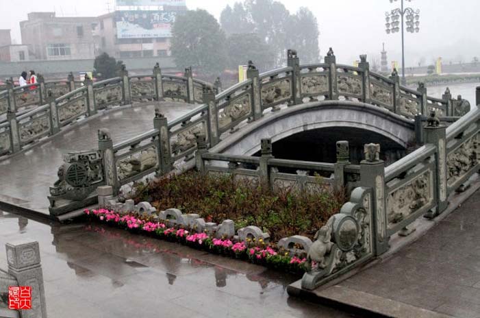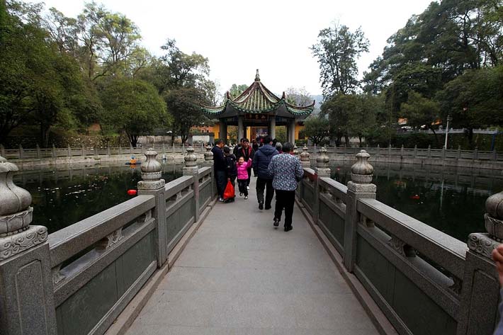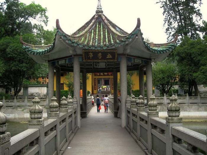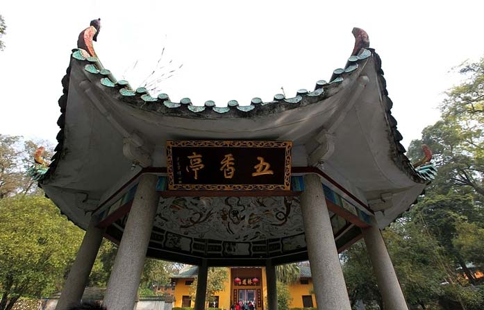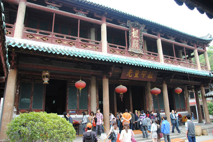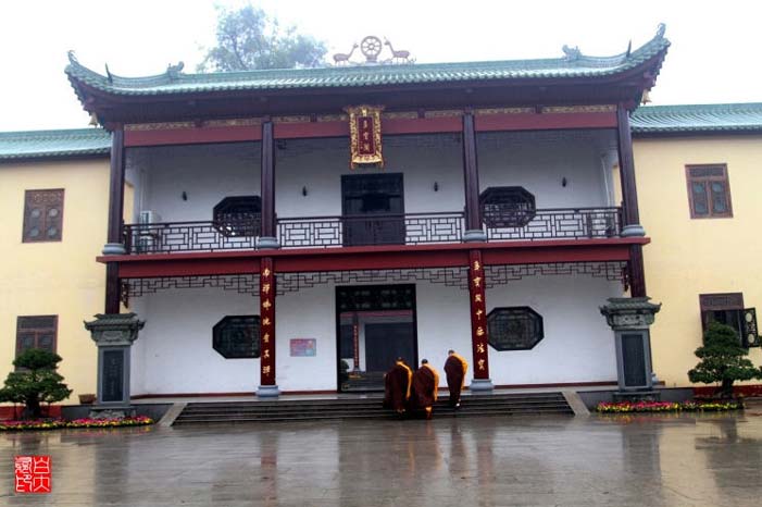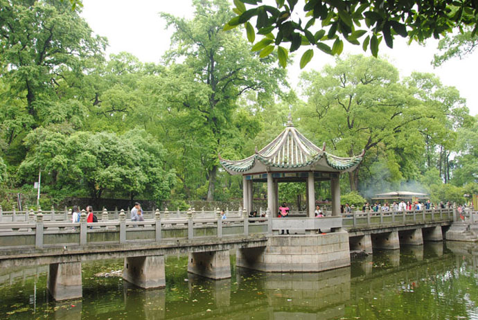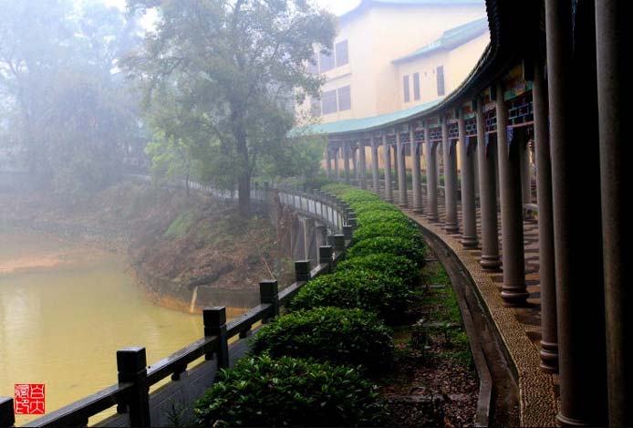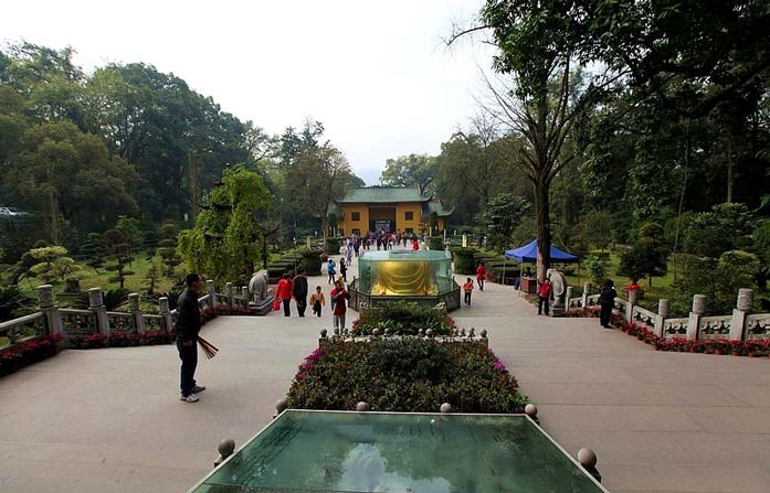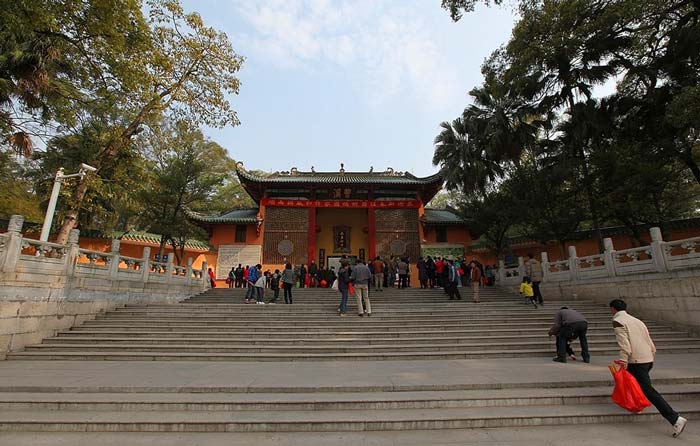 南华禅寺位于韶关市曲江区马坝镇以东7公里曹溪河畔。据明万历《曹溪通志》记载:南朝梁武帝天监元年(公元502年),印度高僧智药三藏见此地“山水回合,峰峦奇秀,叹如西天宝林山也”,遂建议地方官奏请武帝建寺。天监三年(公元504年),寺庙建成,梁武帝赐额“宝林寺”。唐仪凤二年(公元677年)始,中国佛教禅宗六祖惠能大师来宝林寺说法37载,使南宗禅法大播于天下。故南华寺素有南禅祖庭之称,还与嵩山少林寺并称为禅宗祖庭,在东南亚、朝鲜、韩国、日本以及欧美等国家和地区有重要影响。武则天万岁通天元年(公元696年),武则天赐慧能水晶钵盂、磨衲袈裟等物。唐神龙元年(公元705年),中宗又赐宝钵、磨衲袈裟等物,并将寺名赐改为“中兴寺”;神龙三年(公元707年)再改“法泉寺”。宋开宝元年(968),太祖赐额改称“南华禅寺”,沿称至今。1983年,南华寺被确定为全国重点寺庙。今南华寺占地总面积约一千多亩,主体建筑群总面积3万多平方米。为阶梯式中轴线对称平面布局。寺向为坐北朝南。中轴线上由南至北依次为曹溪门、放生池(五香亭)、宝林门、天王殿、大雄宝殿、藏经阁、灵照塔、六祖殿、方丈室。东侧依次为钟楼、客堂、伽蓝殿、斋堂等;西侧依次为鼓楼、祖师殿、功德堂(亦称西归堂)、禅堂等。主体建筑院落外,北侧有卓锡泉(俗名九龙泉)、伏虎亭、飞锡桥;西侧有无尽庵、海会塔、虚云和尚舍利塔;东侧有中山亭、息心园、多宝阁、佛学院、禅堂。目前建设唐代大南华正在进展中。