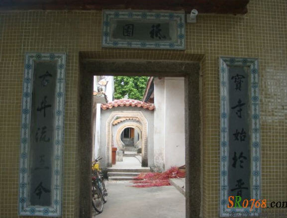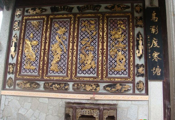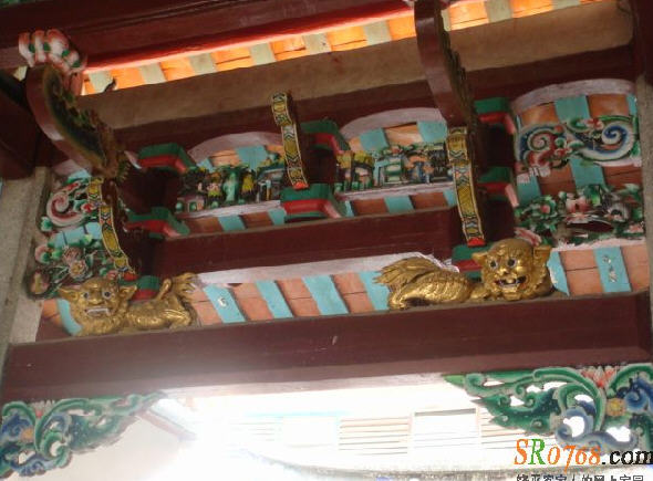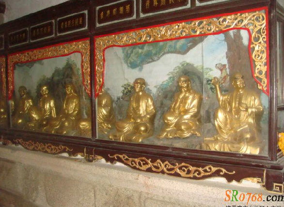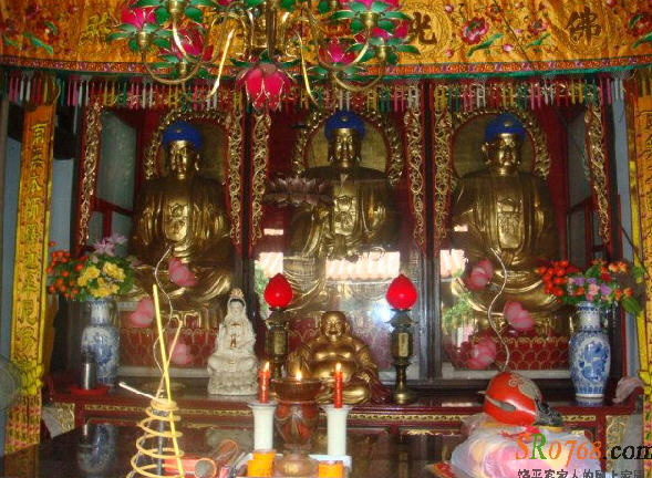 后厅。也就是大雄宝殿,系宫殿式建筑,精工雕饰,翘角飞檐,气势壮观。脊顶嵌瓷“双龙朝火宝”,是饶平县老工艺师蔡佳余妙作。殿前走廊,置一长方形香案。正殿与走廊间,有彩色雕栏,校址 有精美的窗扇。