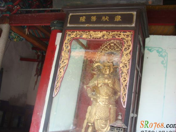 中厅。分二部分,前部奉玄天上帝塑像及香案、南海观世音菩萨,后部奉韦陀菩塑像及香案。