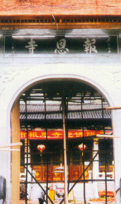 寺之前身,由大檀越魏集善先生肇创,向以导众奉佛、慈悲济世为宗旨。年久失修,残破不堪。魏族裔孙钦章先生,为秉先哲遗志,虔心访寻大德,谋筹重兴圣境。时闻双峰古寺首座光茂法师,严净毘尼,行止端洁,度人接众,茹苦含辛,自忖能重兴古堂,上报佛恩祖恩,下酬夙愿私愿,则此生无憾矣。于是,魏钦章先生与村委领导暨乡彦耆宿切磋,愿将祖遗佛地明善堂无偿捐献佛门,全权奉交光茂法师筹建并礼请为主持,旋即订立无偿捐赠协约。光茂师特易寺额同“报恩寺”,以寓酬报四恩之深义。师呈报市民族宗教事务局,迅获允登记重建。胜缘当前,光茂师请人精心设计,倾俭积钵资,于2004年奠基兴工,十方信施,踊跃捐输。斯役历期五载,气势恢宏,琳宫焕彩,诸佛妙相,万德庄严。师开堂接众,诲导众生,常礼佛而种善根,勤薰修以明觉路。