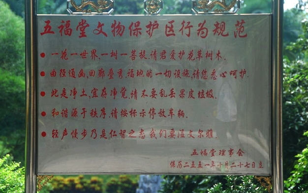 五福堂依山建,历经150年沧桑。解放初期,一片荒芜。1955年,乡民集资重修中殿,因陋就简,以石条为楹,以水泥为桷,为尼众暂时居住处。至“文革”期间,破旧立新,尼众还俗回乡,堂遂为林场征用。