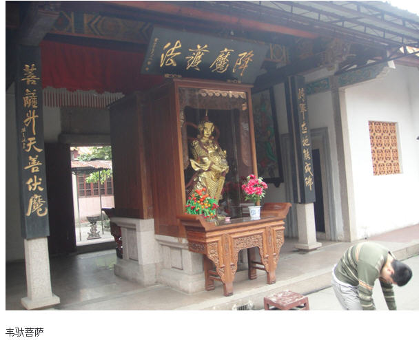 寺内淙淙水声,有泉水晶莹,甘洌清甜。此水何来,乃虾地岽峰地下之清泉也。真是:紫峰荔海闪金波,玉带清流奏凯歌。蝉鸣荔熟游人醉,疑是佛寺通银河。