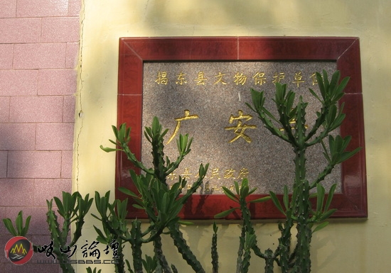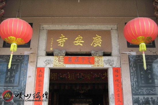 寺前为榕江支流,民国二年(1913)由24乡捐资,释镜贤(1892—1976,俗家磐东)住持向旅泰侨胞和当地善信募化,获马纯清、赵镇尧先生等乐捐,经历2年,即于1915年告竣,在原有一间狭小善堂上,重建扩大为广安寺,同时建了广安桥(也称东仓桥)以方便民众交通。彭湃同志于1927年9月28日至30日的汾水(属今揭东县玉湖镇)战役之后,撤退至寺中住一夜。“文革”中被占为竹器社。1990年7月,释耀瑜师应邀来此察看,遂挑起重兴此寺重任。