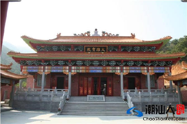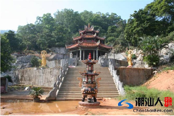 重建一新的古岩,至2001年总投资约300万元,总建筑面积逾2千平方米。寺前有放生池、广场,上方是观音宝殿,内奉观音菩萨圣像,庄严慈悲。踏上两侧走廊楼梯,直上就是大雄宝殿。殿内主奉三圣佛,前面两侧摆十八罗汉,左旁供金刚萨埵,右旁供救度母(梵文“多罗菩萨”,俗称“慈悲娘娘”)。后者左手持钵罗华(青莲),右手作施无畏印,造型优美,体态妍娜,如法庄严。再往上,于右侧约百米处,耸立一座规模在粤东罕见,八角三层的“千手千眼观音宝殿”。