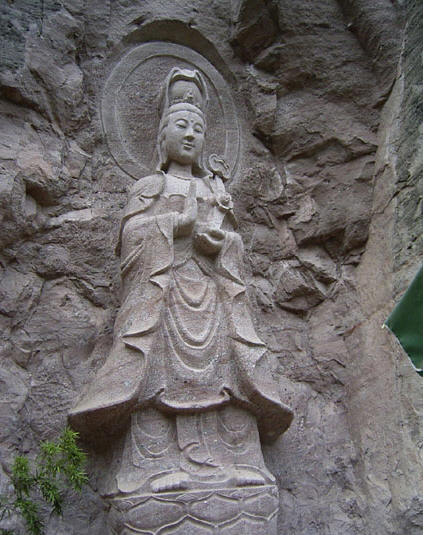 天成禅院 位于武夷山二曲溪南虎啸岩下,原为道士栖居的洞府。明朝时,道盛、元镜禅师在下虎啸岩洞府内建虎啸庵,在此修行。清康熙四十六年(1707年),泉声和尚在虎啸庵旧址重建寺院,改名天成禅院。寺院缀于半壁,上覆危崖,下临绝壁,林木掩映,涧水环流。夜宿寺中,抬头可窥星月,倾耳可闻水声,仿佛“置身星月上,濯魄水云中”。民国时期,逐渐废弃。改革开放以后,虎啸岩的宾曦洞和天成禅院旧址常有僧人驻足。1993年,武夷山风景区管委会在虎啸岩建集云茶室和天成禅院照壁,并开凿后山通往宾曦洞的栈道,修葺宾曦洞,重塑三宝像。1994年9月,在下虎啸原天成禅院旧址大殿后的岩壁上,雕刻一尊观音浮雕像,像高10米。