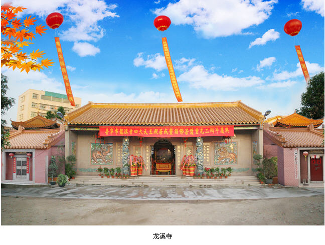 龙溪寺的前身就是龙溪庵,坐落在广东省普宁市流沙镇溪心村,因流沙是普宁市府所在地,溪心村是近郊的一个村落,环境优美,交通便利,闹中有静,实为念佛修行,礼佛祈福的圣地。