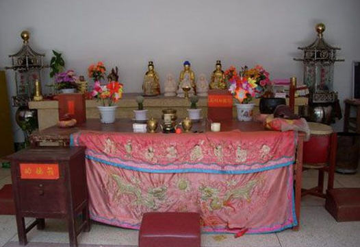 “龙兴寺”小院为鹅卵石铺砌天池。左右有小厢房。入下厅、但见墙壁青砖少许,表面剥落,天顶梁桷均被香火薰黑。应属年代久远,昔日香火鼎盛之无声记载。有一块宽约二十公分,长越三米的木板钉在栋梁上侧方一根横梁上。经该寺住持释斯芳指点和认真辨认乃是:“大清道光二十六年丙午岁里人信生陈仍光、陈尚光,信士何冬秀、何银秀,住持尼众勤荣众重建”。