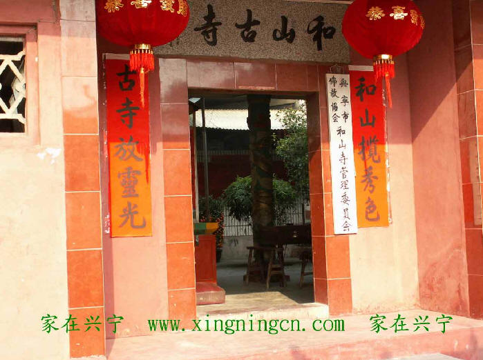 和山寺地处兴宁城东十里外的宁中镇和山村,始建于明朝正德年间,距今近五百年历史,明朝县令祝枝山曾游于此并倡建和山寺后,香火鼎盛,有常住僧人。由于年久失修,解放前由本县知名人士潘明星提倡集资重建和山寺。解放初期,庙宇遭毁坏。