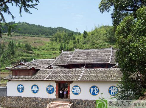 后殿走廊右侧门楼,面阔2、5米,进深1、8米,穿斗式结构,双坡顶。