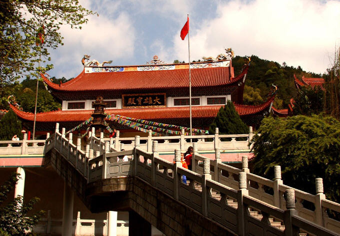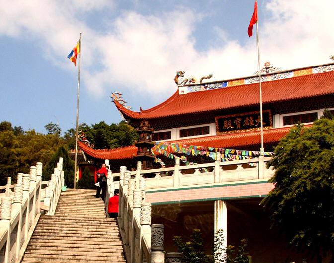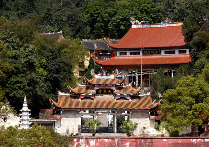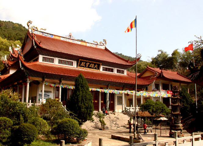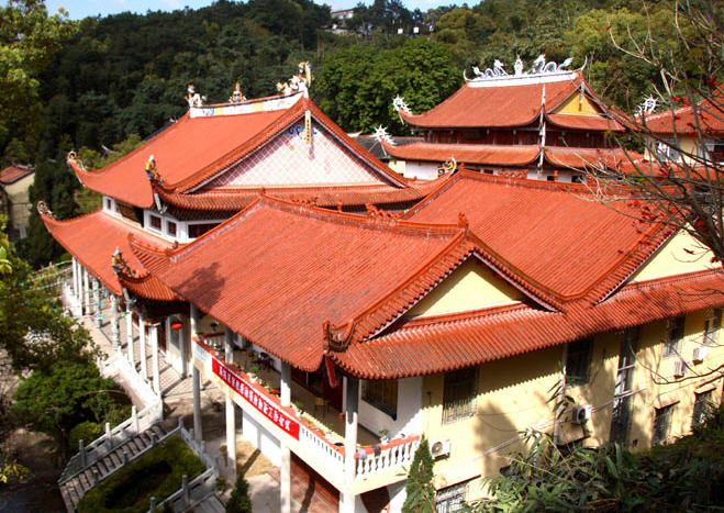 福建宁德天王禅寺 坐落于蕉城城东,古称负廊胜地。创建于五代晋天福七年,明成化九年,莆田名僧心明禅师重建了天王寺。嘉靖间两度扩建。民国初,圆道大师从海外归来,改称堂为佛殿。营林辟池、造亭建塔,楼台水月相映成趣、颇具规模。上世纪六十年代中期寺庙经历了文化大革命十年浩劫,寺庙被占作他用。佛像琅函荡然无存。中共十一届三中全会拨乱反正,重申宗教信仰自由政策。邑僧印法老来寺庙,立志兴复天王寺,但不久便圆寂,未能完成其志向。其后,长慧法师接管寺庙,诚心向佛,带领众僧重兴寺庙,用毕生余力重振古刹雄风,共历时十八余年。陆续兴建了山门、韦驼殿、大雄宝殿、千佛殿、法堂、藏经楼、五观堂、烟霞阁、齐厨、僧舍;重修了玉佛殿、圆通殿、水云乡等殿堂楼舍。藏圣像于琉璃之殿。树崇楼于绿荫之间。在天王寺可“朝闻乾陀之钟声,夕听频枷之雅音”,后又开筑了一条八百米进山公路,方便游人香客。