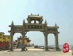 未抵寺门,远远便望见一座山门拔地而起,由原全国政协副主席、全国佛教协会会长赵朴初亲手题写的“海天佛国”四个大字就镶嵌在上面。