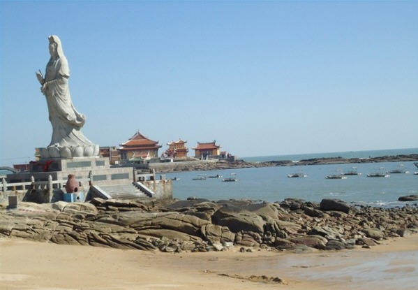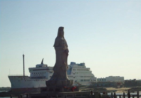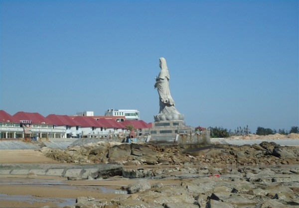 走出洛伽寺,向西与洛伽寺为邻的还有一座高十有四米,以九十九块花岗岩石精雕而成的观音。这座雕像已经成为黄金海岸的标志性建筑。