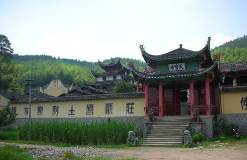 天宝寺位于屏南县长桥村西行二里许的琴屏山南麓,曾有笔墨者写到:“天宝寺殿堂坐南朝北,与笔架山遥遥相对,东、西、南三面群山环抱,形似五龙落井之势。有风水先生断言,此处为状元地”。