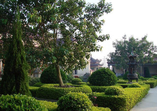 置身在大雄宝殿殿前,发现整个普莲寺背倚姑嫂塔,面向石狮市区,前面还有石狮东环路贯通于此。南山北麓,花树掩映,青山绿水,郁郁苍苍。