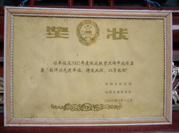 金盘处太姥支脉列鼎邑十二中寺,前为下庵肇建于宋,明永乐十一年僧觉通迁今址。古碑载僧觉通延请檀越首延五蒲凌饮公献基并捐户内田十四石及庄业,继由磻溪望族林实斋[即仲叔公福鼎佛教誌误为宾齐]暨紫岭林仲儒共献田贰佰伍拾多担.久经兴替.清乾隆年奉曹洞太姥灵狮洞系。解放后僧寿荣住持历经文革殿宇鸠占失修。西历一九九一年起尼昌根又名悟芳继主募缘重建大殿两庑山门地藏殿海会塔。二OO二年九月某居士首倡得磻溪宗亲及金谷金盘村邻支持十方善信喜舍净财二十万元修通柏油路。谨将捐资贰百元以上者勒石流芳。