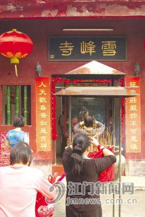 江门市博物馆原副馆长梁炳尧说,上世纪40年代,当时还年少的他曾跟母亲到过雪峰寺拜神,多年过去了,印象中的雪峰寺已经十分模糊了。他只记得庙里有大的院子、走廊,还有很多大尊的佛和菩萨像等,雪峰寺香火鼎盛,香烟缭绕,每天都有很多人前来参拜、求平安。解放后,几经变迁,寺址成为看守所,后来看守所迁出,又拆建成厂房和住宅,现在已经很难找到雪峰寺当年的痕迹了。
