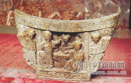 值得关注的还有号称镇寺之宝的宋代石雕奠酒器和传说是皇帝御赐的木制龙牌。先说奠酒器,其外形呈元宝状,上宽下窄,高46厘米,宽69厘米,厚15厘米。奠酒器上面雕有一长42厘米,宽5厘米,深3厘米的酒槽,前后两壁是精美的浮雕,其中间部位左侧的石雕人物穿着宋代官员服饰,右侧人物似是宋代乡绅,中间和边上各有1名送财童子。奠酒器脚部为太阳拱照的浮雕图案花纹。浮雕人像面部表情笑容可掬,堪称一件较有价值的工艺品。此奠酒器在桂林寺夷为废墟后被弃之附近瓦砾地,先后见证了桂林建寺八百至上千年来几度废兴的历史。