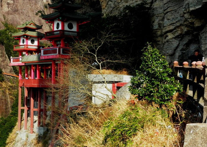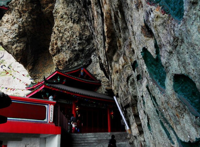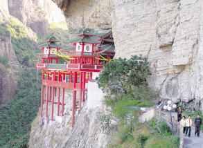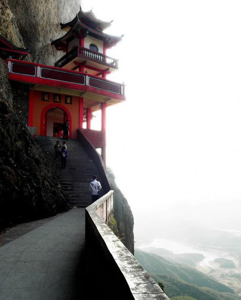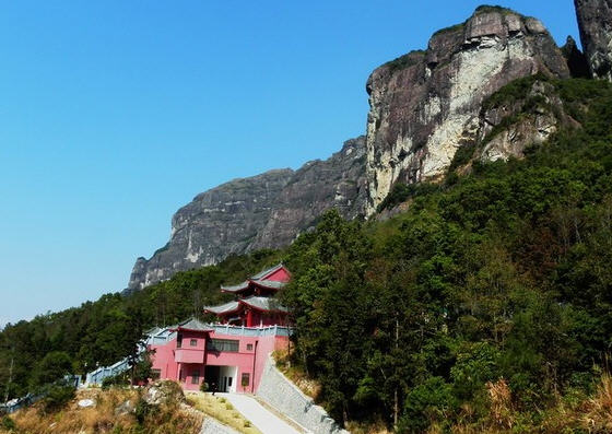 灵通寺,位于主峰之一的擎天峰,海拔920米,坐东朝西,面向漳州市第一高峰大芹山,其寺利用火山岩多年风化、侵蚀形成的天然石室修建佛殿,面积为910平方米,正中题写“大雄宝殿”,殿内壁是天然巨石,殿中供奉着手握经卷的南海观世音菩萨和三宝佛像,庄严慈祥,神态可亲。大殿两边供奉着十八罗汉,神态各异,栩栩如生。岩洞南边有个从巨石缝中渗出的清泉,积水为池,池水甘甜清冽,名为观音泉,据说此泉水可祛邪避暑,延年益寿。在观音殿前,俯视万丈深谷,危岩深涧,仰望巨石擎天,云雾缭绕,风光绮丽,给人以登高居险的感觉。