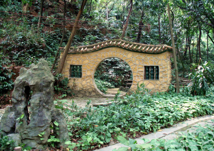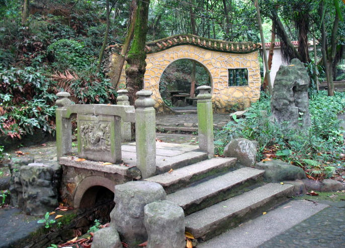 "小朱明洞"牌坊往前不远有一水井,井旁立一石碑,刻有"龙溪第一泉"字样,此乃著名的"无叶井"。相传此井为一行高僧所开凿,井径一尺多,井深五尺余,泉水清冽甘美,用此水泡茶,甘醇可口,别具风味。此井还有一个独特之处:井的上面周围都覆盖着..