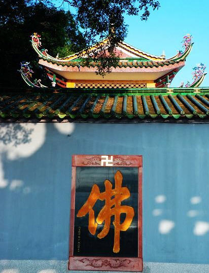 南山寺 在深桥镇大美村的南山北麓。始建于五代,历代重修。“文化大革命”期间被村办工厂占用时,因失火焚毁。1978年后由华侨、港胞等捐资重建。占地300平方米。坐南朝北。正殿面阔3间,屋顶为四垂单面坡式,中部突出为四方形3层楼阁式屋顶,梁架结构呈八卦形,顶端为藻井,建筑独特。正殿两侧为厢房。至1996年存清代重修碑刻。