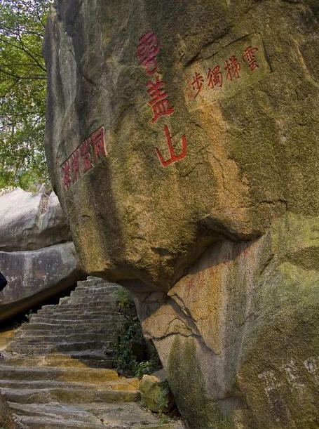 此寺原靠石壁(狮子石)而建,大明天启三年(公元1624年)移前重建,清乾隆年间又重修,后陆续修缮,90年代再盖一幢。现在寺庙雕龙画栋、宏伟壮观、富丽堂煌。寺后高山群立,寺左边有天然储水石臼,甘甜心脾的泉水经数十条石沟蜿蜒而下流入大石臼。寺右边有宽敞的天然石室,可容百余人,冬暖夏凉,实为罕见,寺前有“云梯独步” 游客飘然迈上百层台阶佳境。站在大石上,燎望大自然美丽风光,令人陶醉、心旷神怡、留恋忘返。云盖山上石壁巍巍屹立,树木青翠环抱,山川毓秀,景色迷人,还有“亲吻情石”、“金猴抱子”、“金鸡下蛋”、“风动灵石”、“石笋刺天”之景,狮子石、凤凰石、双鲤石、老僧石、醉翁石等栩栩如生,形象迫真。