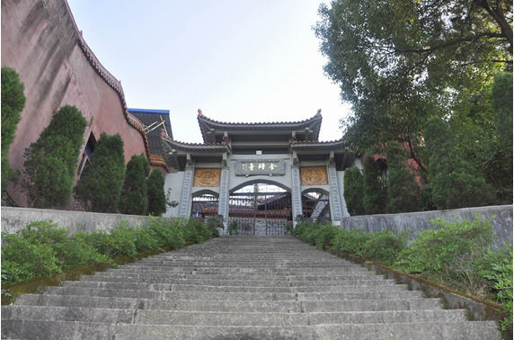 从罗江对岸便可遥望座落于金钟山腰,红墙黄瓦,殿堂依山而起,仿佛是坐在狮子座里的巍巍梵宇金钟寺,在丽日蓝天之中,闪烁光彩。从赛岐登高路拾级而上,走约300米路程,仰首就可见到金钟寺山门。稍作休息,再登上象征“五十七阶位”的六米宽五十,级石阶,便 入“大佛顶首楞严”,到了圣域--金钟寺。