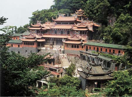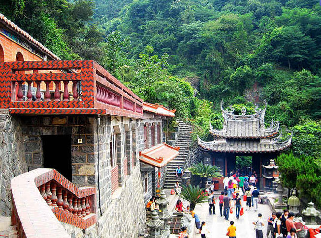 蓬莱山,古称张岩山。这里岩峰耸立,怪石嶙峋,林木苍翠,奇花异草遍野,蜂飞蝶舞其间,旖旎的南国风光,堪称与神话传说中的“蓬莱仙境”相媲美,故易名蓬莱山。岩寺位于海拔500米的半山处,岩石环立,泉水清澈,故名为清水岩,素有“泉石无双地,蓬莱第一峰”之赞誉。
