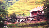 寺之右路山前有座建筑形式独具一格的六角五层宝塔,名为“观音阁”,每层都有飞檐画栏。最顶层奉祀观音大士,并挂有万岁楼牌匾;第三层为宽敞的会客厅,吸引历代文人墨客,在此题诗作联,其中一对游子嵌“香林”的冠头联,颇有佳趣:香妃****西子秋波妆成媚态柔肠问今世具几双醒眼?林畔樵歌溪边渔唱弹到高山流水看古来无二个知音。