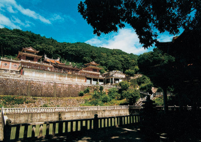 寺右山上有“朝天亭”,“朝天”两字系清.乾隆年间(一七三六~一七九五年)福建观察使马负书题。