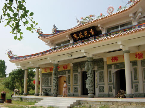穿过一条石砌的乡村道路,和源寺大雄宝殿、僧舍在树林的映衬下显得庄严而雅致。和源寺住持普藏法师介绍,清朝道光年间,白奇一位姓郭名党的船老大,在建好自家房屋后出海捕鱼。当渔船驶入台湾海峡时,忽然风急浪高,巨浪推翻了渔船,船上渔民无一生还。后来,郭党托梦给白奇乡亲,捐出自家房屋改建成佛堂,以保佑乡亲出海平安。