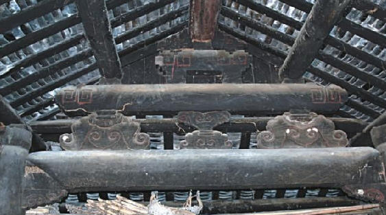 后殿面阔三间9.9米,进深三间6.8米共九架。前、后檐柱插栱挑出,支承檐檩。歇山顶。抬梁式梁架,架梁斗栱造型同山门,具明代风格。后殿梁架中还存在鳌鱼托脚。与山门一样以16根柱子承重,前檐柱为八角形鸭屎石柱。后殿前带两廊,均深五架,双坡顶。前后座及左右两廊的屋面巧妙融合,各部分檐口齐平,两廊正脊接前后座歇山之博脊。整组建筑的屋面做法浑然一体,是其特色之一。