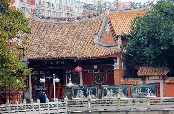 泉州铜佛寺,位于市区百源川池畔,寺前绿榕垂荫,水光潋滟;东为工人文化宫,西邻泉州府孔庙、明伦堂等古建筑,一九六二年公布为第一批市级文物保护单位,占地面积约2000平方米。