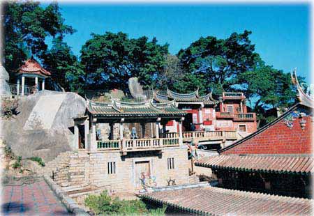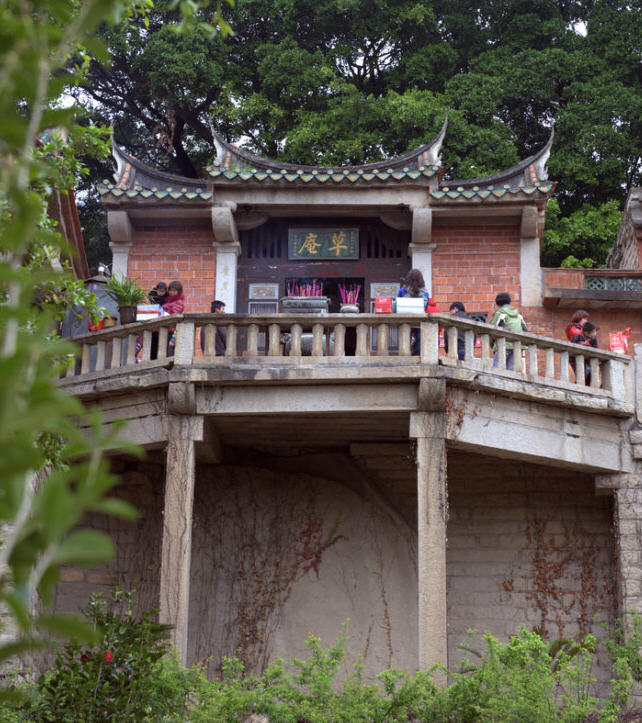 摩尼教遗址位于晋江罗山镇苏内村华表山麓。始建于宋绍兴年间,初为草筑,故名。元至元五年(1339年)改为石构,单檐歇山式石室,面宽进深各三间,檐下用单挑华拱,并雕摩尼光佛石像。石室背后巨岩耸峙,林荫遮掩。庵前有山涧流水,古桧数株,更添几分清净情致。