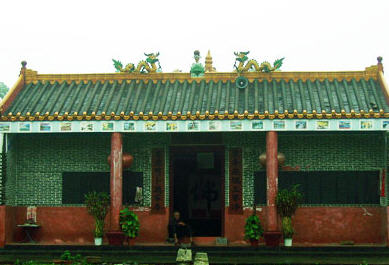 从陂面镇政府往北步行不到十分钟,左转弯见一座岭墩,名谓麒麟吐火,它与右边的黄牛饮水遥相呼应,形成了一脉二景之状,东有石尾群峰雄奇刚健,西有圭岗岭脉扬扬洒洒,秋水荷塘,古色古香,这些景观一下子把人带入了佛学文化的禅境意蕴之中,心头就全醉了。墙内墙外的数十幅作品都出自蔡焕之手,而寺中横匾则是原广东省文学院副院长、国家一级作家沈仁康的墨宝,匾曰:“阳春第一寺”。寺门盈联亦禅意盎然:“来本无物三界净,吉言可卜万家春”,原创者是前清当地的一名林姓贡生。