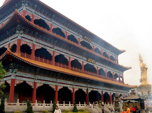 莲花禅寺坐落于珠江口狮子洋畔的莲花山旅游区内,景区内的“莲峰观海”是“新世纪羊城八景”之一。望海观音宝像高40.88米,用120吨铜铸成,外贴金箔;大型仿古单体建筑莲花禅寺,建筑面积达3872平方米,首层殿中央立有纯铜铸造的高19.19米的千手千眼观音像。