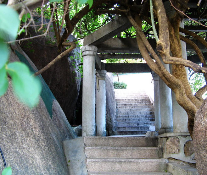 汕头市升平区鮀江街道桑浦山脉龙泉古岩,俗称“上岩”(因山下南侧数十米远有创自宋末的下岩“龙泉岩”之故),相传创于宋钦宗靖康年间(1126-1127)之后,1978年至1999年由住持释宏慈重修并扩建,以岩泉奇特、明代尚书翁万达(1498-1552)少年在岩旁天然石室读书而闻名遐迩,1988年被列入市文物保护单位。