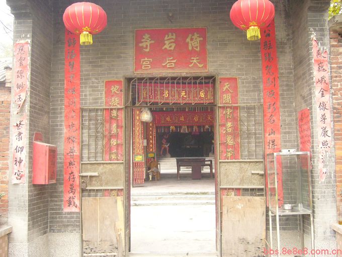 倚岩寺位于增城市新塘镇联星石巷,与增城新八景之一的海蚀洞相连,本是远古海陆变迁所形成的一座岩洞,名曰“古海遗踪”。与海蚀洞洞门连接的是一隅比洞口更高更大的石岩,岩下有石台,犹如神殿,人们便用这一天然殿台建“倚岩寺”。寺与洞相连又相通,游人出入其间,别有一番情趣。