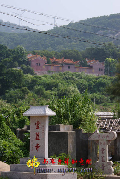 云盖寺,位于云澳镇荖园村东侧山腰。原称“三宝寺”,创自宋(960-1279),明(1368-1644)重修时用今名,系南澳岛最早丛林,“古寺晴云”为南澳八景之一。1992年8月15日由县政府公布为第二批文物保护单位。自1985年起历经16载,由原住持通教尼师艰苦备尝,募资重建扩大,于2001年10月5日落成开光。